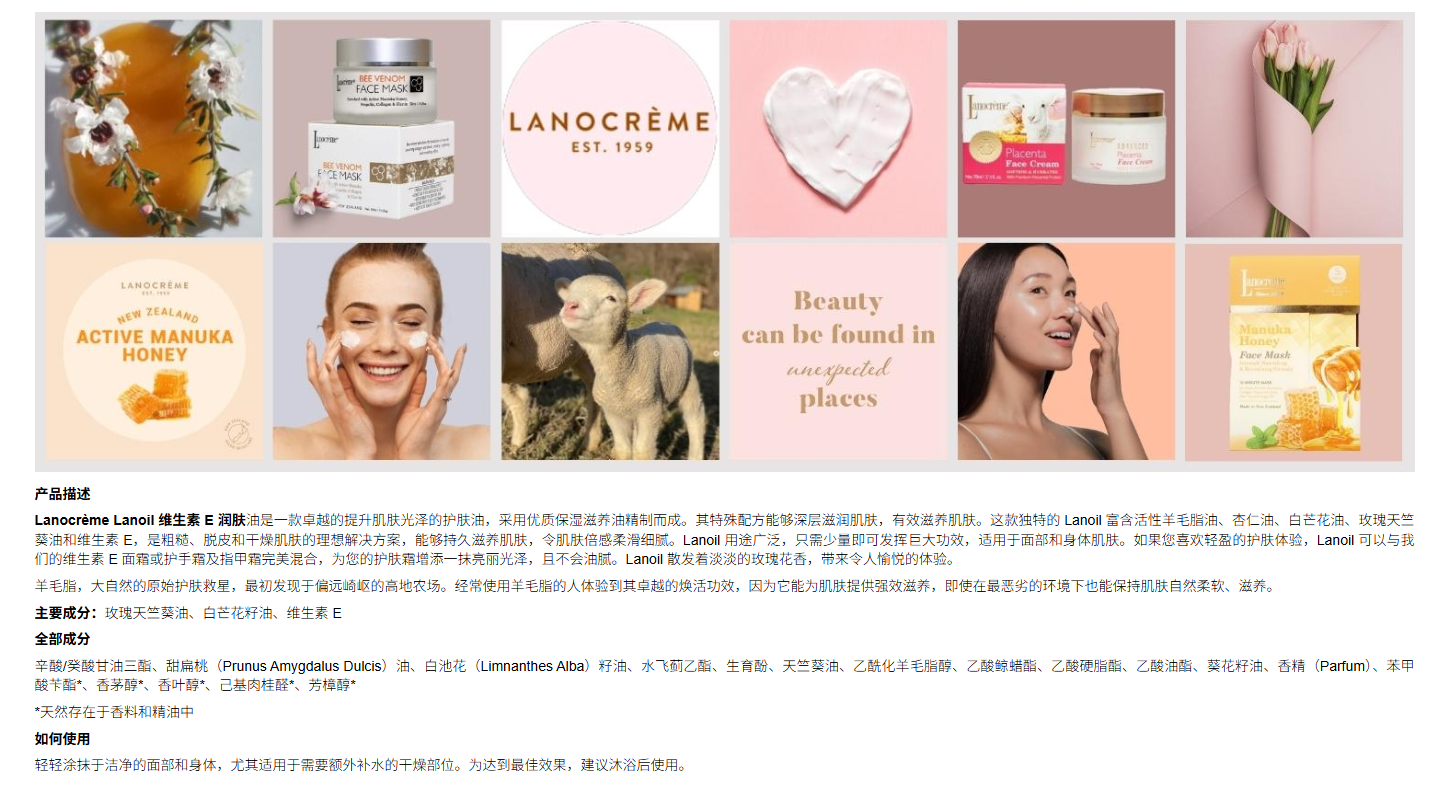 Lanocreme-Lanolin Originals 羊毛油 含维生素E 滋养面部和身体油 50ml