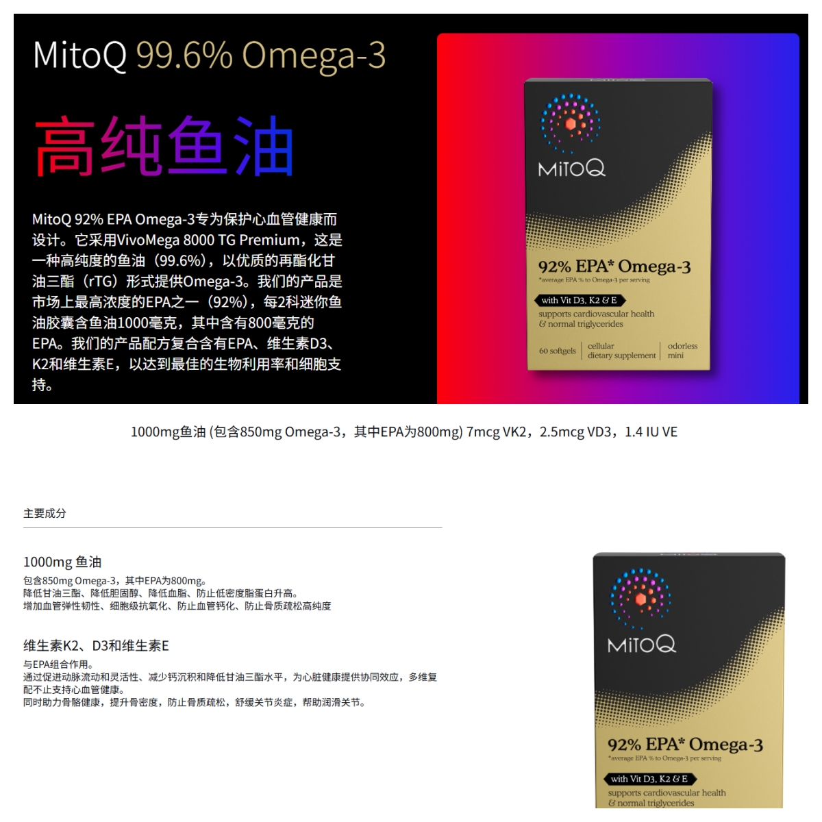 Mitoq 高含量EPA鱼油60粒 92%EPA 2027.10