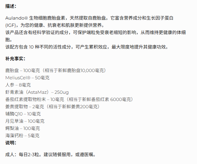 Aulando 欧兰多细胞修复鹿胎胶囊 90粒