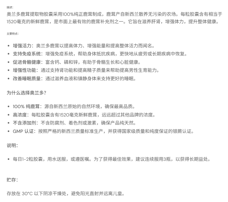 Aulando 欧兰多 超高含量鹿茸1520精华丸 90粒