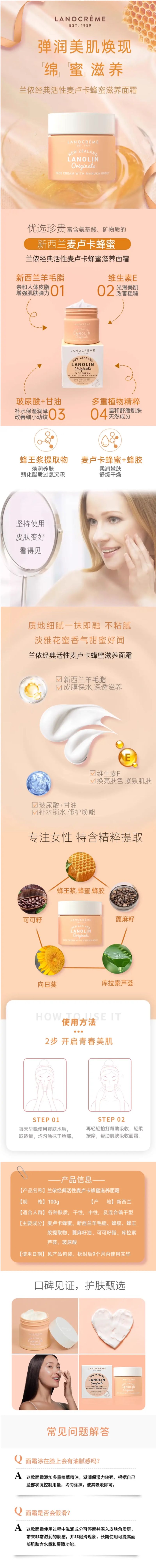 Lanocreme 兰侬 橙色 麦卢卡蜂蜜 面霜 绵羊油 100g-保质期-2027.12