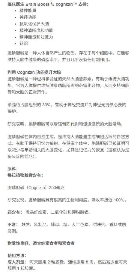 Clinicians 科立纯护脑胶囊30粒 临床医生用Cognizin胶囊增强大脑功能 EXP.2027.06