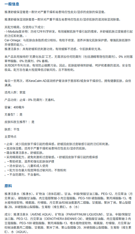 Avene雅漾湿疹膏Balm-400ml【2028.04】